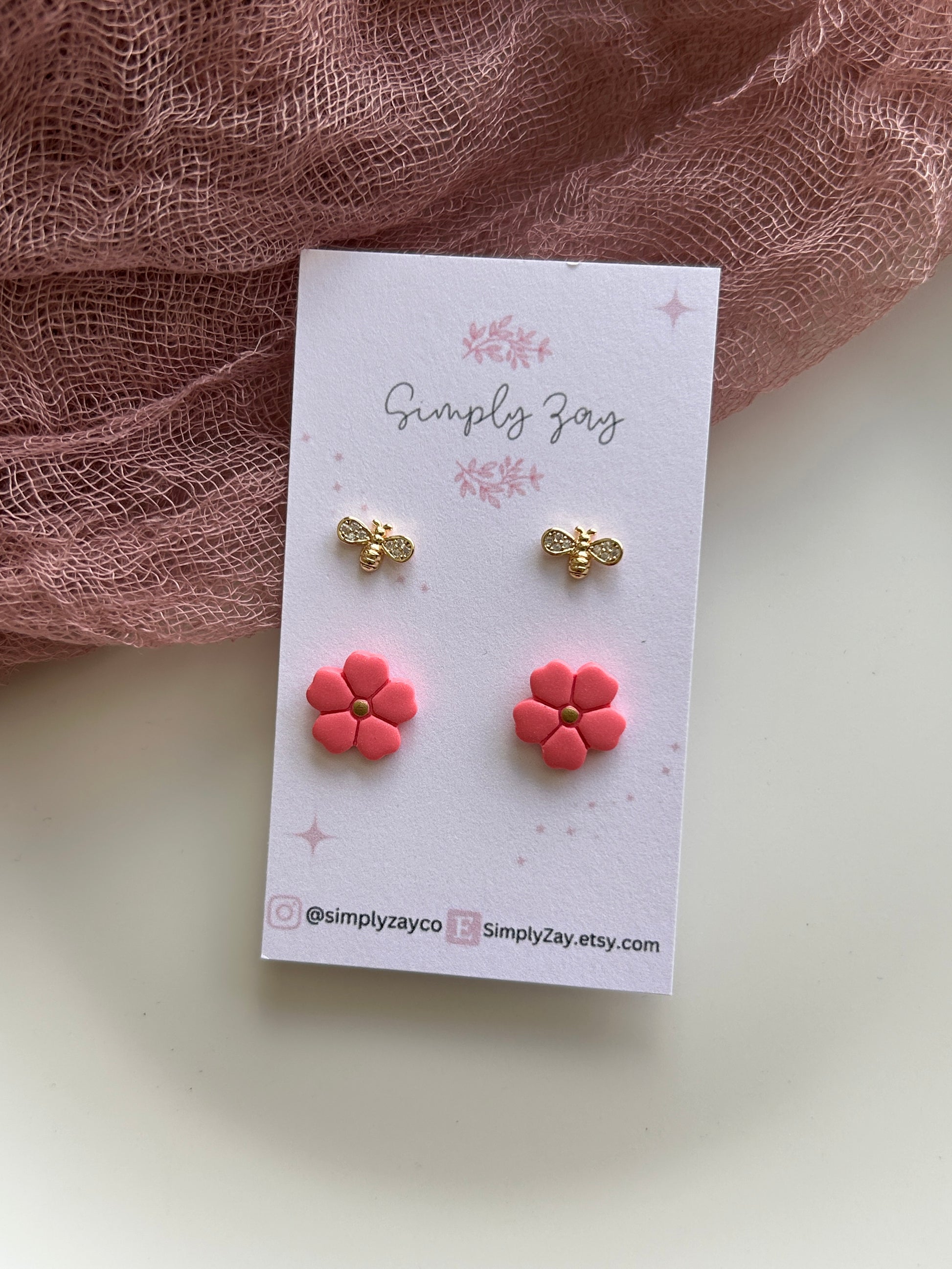 Bee gold plated studs and pink flower studs.